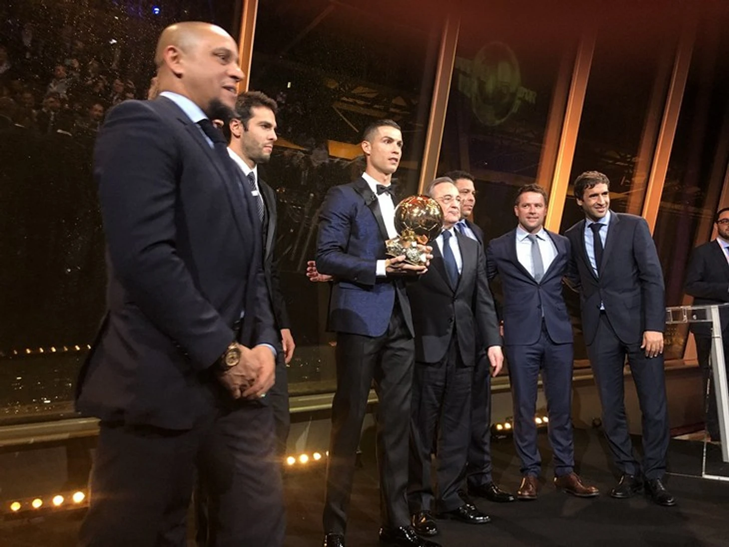 Роналду поздравили президент «Реала» Флорентино Перес (справа от Криштиану) и легенды клуба.