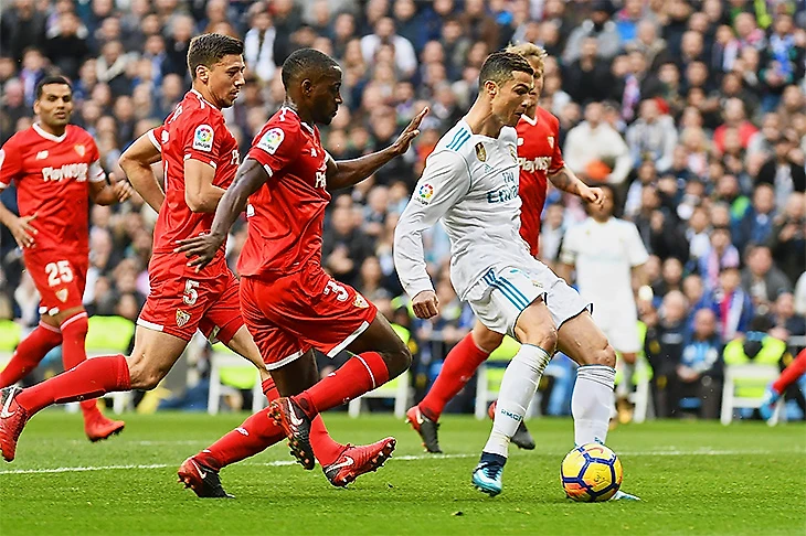 Роналду еще в первом тайме отгрузил «Севилье» два гола. Теперь у него 24 мяча в 15 играх против андалузцев – больше он не забивал ни одной команде примеры.