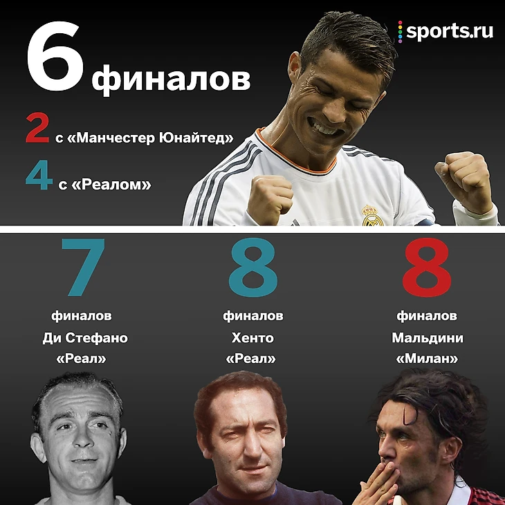 У Криштиану Роналду – свое супердостижение: впереди 6-й финал в карьере. Дважды он играл в главных матчах ЛЧ за «Манчестер Юнайтед», а 26 мая в Киеве в четвертый раз выйдет в составе «Реала».