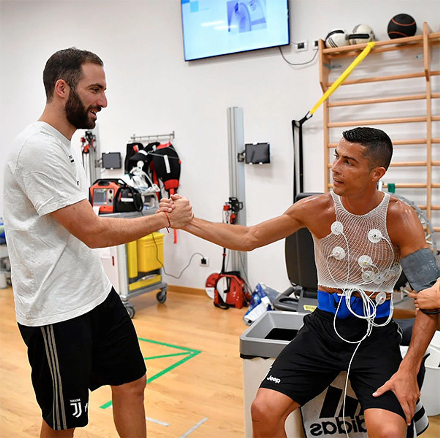 Сегодня утром Роналду сдал пару тестов на физподготовку – и тренеры определили план работы на ближайшие дни. Старт занятия планировали на 15 часов (16 мск), но участники съехались к базе с опозданием. Вместе с Кришем в зале тренировались Игуаин, Дибала, Куадрадо, Дуглас Коста и Бентанкур. Они все участвовали в плей-офф ЧМ, поэтому вышли из отпуска позже остальных.