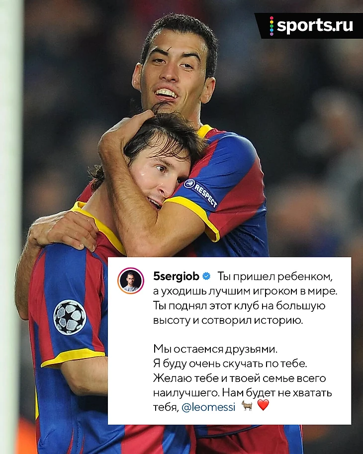В уход Месси из «Барселоны» сразу будто не поверили и партнеры Лео – вечером четверга почти не было постов с прощальными словами. «Спасибо за удовольствие играть с тобой», – лишь написал Сеск Фабрегас. Из значимых фигур к нему присоединился Карлес Пуйоль.