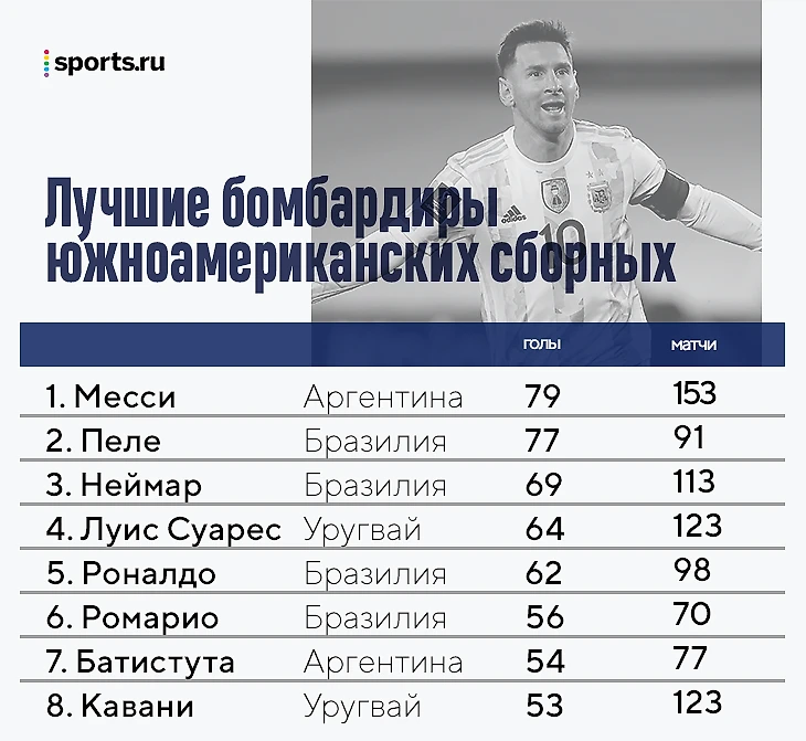Хет-трик позволил Месси обойти Пеле и стать рекордсменом по голам за южноамериканские сборные. Теперь у аргентинца 79 голов (в 153 матчах), а у бразильца – 77 (в 91 игре).