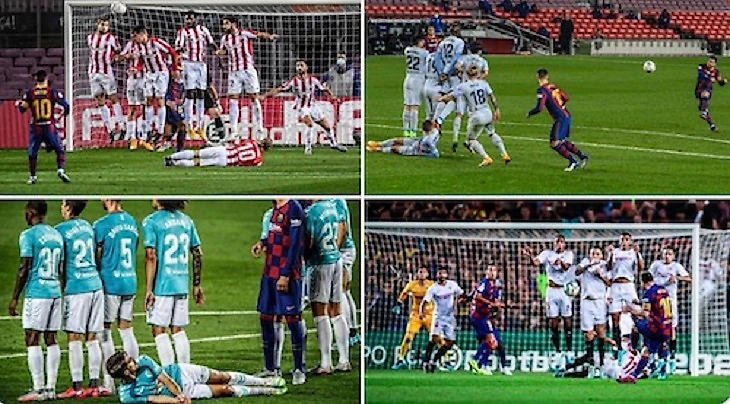 Интересно, что этот трюк начали активно использовать, чтобы бороться как раз против штрафных в исполнении Месси. Игроки ложатся на случай, если мяч вдруг полетит под стенкой.