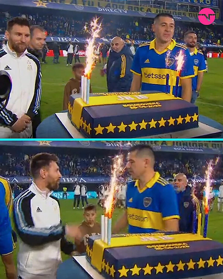 Потом Рикельме вынесли красивый и довольно увесистый торт.