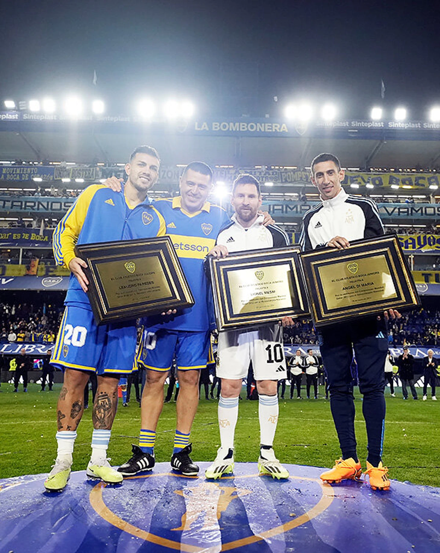 Перед матчем между «Бока Хуниорс» и сборной Аргентины Месси и Рикельме сфотографировались с Ди Марией и Паредесом.