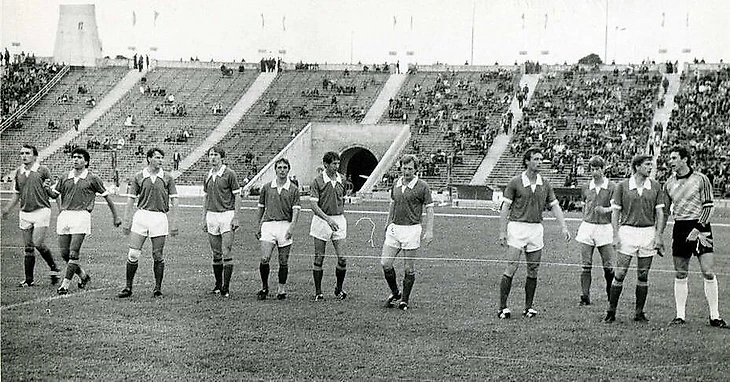 1987, июнь. Перед победой Металлиста в Ленинграде, над Зенитом (2:1). Слева-напр: Деркач- АДЖОЕВ- Якубовский- Кузнецов- Сусло- Талько- МАЛЫШЕНКО(автор обоих голов) -Тарасов- Буряк- Махиня- Сивуха.