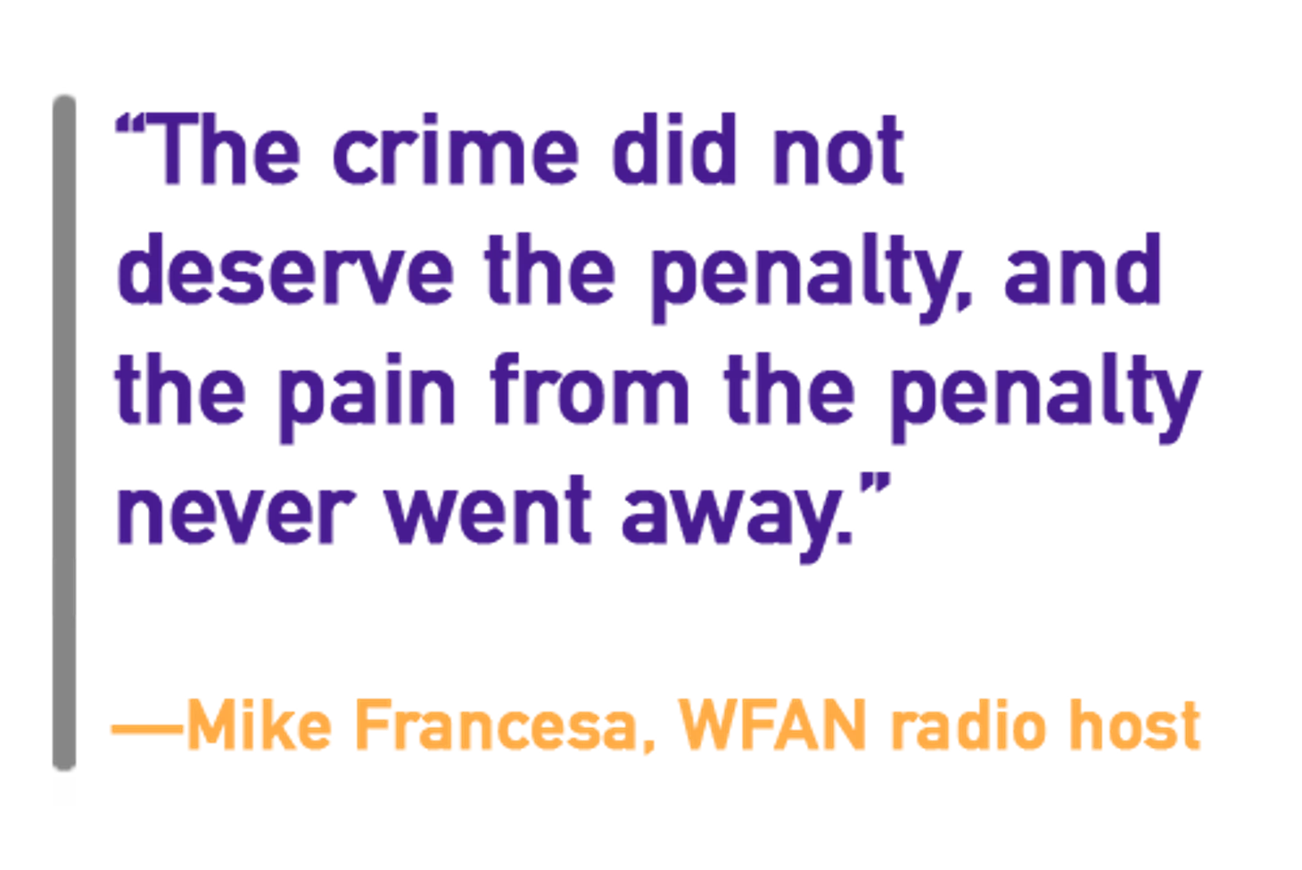«Преступление не заслуживало наказания, а боль от наказания не уйдет никогда» – Майк Франсеса, комментатор радио WFAN.