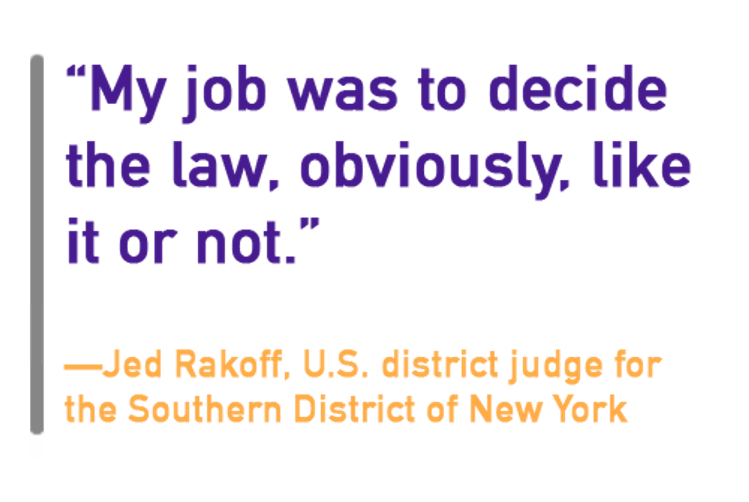 «Моя работа была в вершении правосудия, нравилось мне это или нет» – Джед Ракофф, судья Южного округа Нью-Йорка.