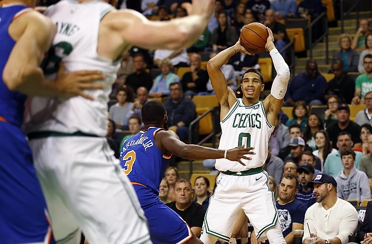 Главное беспокойство при переходе Тейтума в НБА было в том, что же он станет делать, если не получит мисматч. В Дьюке он играл смолл-болльную «четверку» и для игры на этой позиции, но уже на профессиональном уровне, ему не хватает габаритов или скорости. Джейлен Браун, третий выбор на предыдущем драфте, является хорошим ориентиром. Тейтум легче Брауна на 10 кг, и он никогда не сможет побить его в прыжке или в забеге на скорость. Он бы с трудом смог забить через Брауна один-в-один. Одним из ключей к раннему успеху Тейтума является то, что его не опекают защитники калибра Брауна. Лучший оборонец-вингер команды соперника сосредоточен на самом Брауне, и не у многих команд есть два таких игрока.