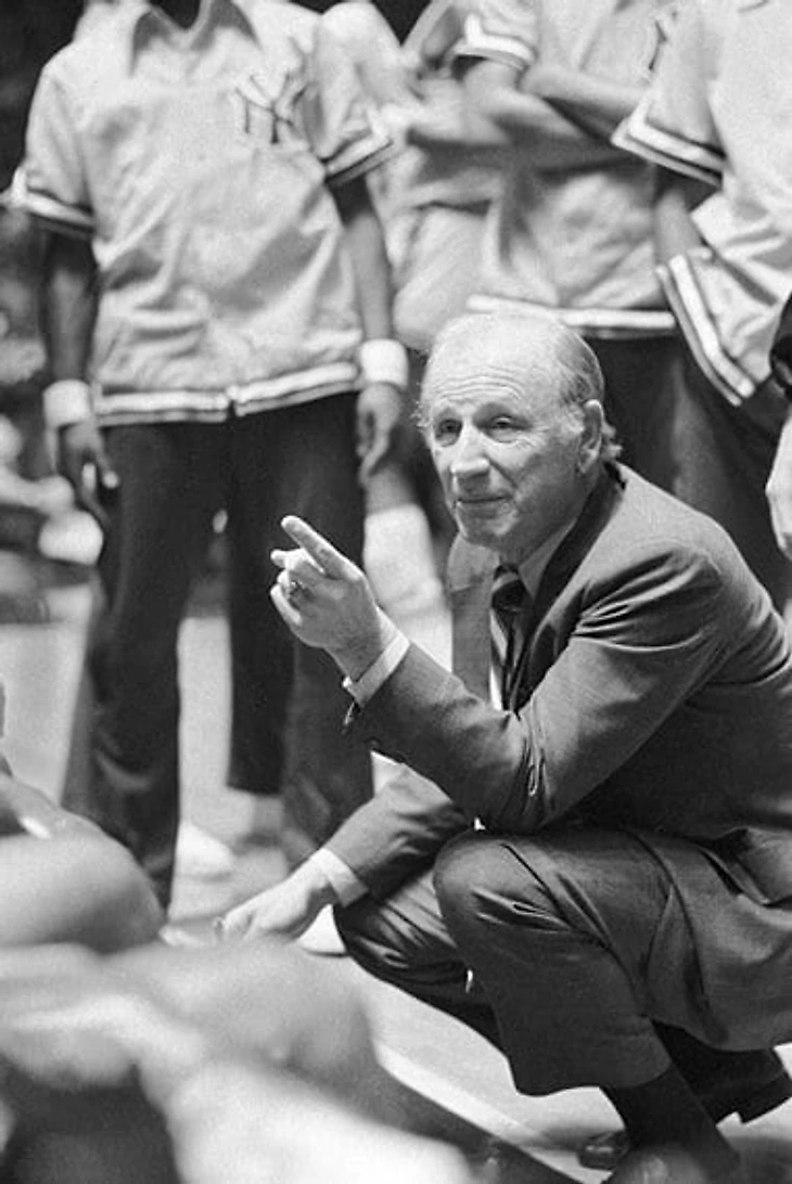 Подобно тому, как Ред Ауэрбах подмял под себя шестидесятые, другой рыжеволосый еврей из Нью-Йорка стал главным баскетбольным дирижером семидесятых годов. «Никс» Реда Хольцмана играли в понятный командный баскетбол, который опирался на что-то вроде нейронной сети. Была система, основанная на открытии простых истин вроде «отдай мяч свободному игроку» и «следи за мячом». В нападении команда отдавала всю себя безостановочному перемещению мяча, что защитник Уолт Фрейзер называл «созданием стихотворения». С другой стороны, в обороне они были больше похоже на одну из языковых игр Витгенштейна, представив лиге скоординированные, взаимосвязанные защитные схемы, которые требовали от игроков соблюдения некоторых параметров.