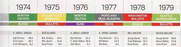 НБА семидесятых можно разделить на две, а то и на три различных фазы. Вначале «Никс» выиграли пару чемпионств, Уилт и Уэст наконец-то получили шанс пожить без удушающего захвата от «Селтикс», а молодой центровой по имени Лью Алсиндор был готов проследовать по стопам Билла Расселла. В то же время мятежная АБА готовила свой мощнейший баскетбол, где стиль был неотделим от содержания. Но вскоре между двумя лигами разразилась война, зарплаты взлетели до небес, афроцентрический уклон игроков изменил имидж всей игры, и судебные дела стали влиять на направление развития всего спорта. НБА избавилась от надоедливой АБА в 1976 году, поглотив четыре самые сильные команды, и самое главное, обретя таких привлекательных игроков, как Джулиус Ирвинг и Дэвид Томпсон. Десятилетие закончилось имиджевыми проблемами лиги, кризисом индивидуальности и опасениями относительно отчуждения общественности. Но в эти непростые годы также появились такие выдающиеся игроки, как, к примеру, Боб Макаду и Бобби Дандридж, которых стоит упомянуть.