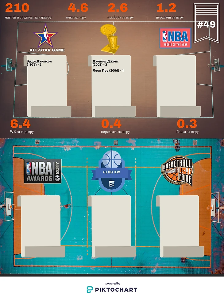 Но история Джонса – это история не личного успеха (так как сам Джонс был глубочайшим скамеечником, за всю карьеру в НБА собрав статистику в 5.2 очка, 1.8 подбора и 0.5 передачи в среднем за игру), а история об удачной дружбе. С лучшим игроком современности, Леброном Джеймсом. Но дружба эта зародилась только в момент их объединения в «Майами», а до этого Джонс успел поколесить по НБА, поиграть в «Индиане», «Финиксе» и «Портленде», попасть в «Хит», быть оттуда отчисленным и вернуться снова. Дальнейшие отношения с Леброном – уже история. Леброн назвал Джонса своим лучшим партнером по команде, его положительное влияние на химию в коллективе также отмечал и Кевин Лав в «Кливленде». Куда, кстати, Леброн упросил перейти Джонса в 2014 году, натурально встав перед ним на колени. И чемпионский паззл сложился, в какой-то мере благодаря наличию Джонса «Кавс» удалось взять титул в 2016 году, а через год он и Леброн вошли в когорту элиты, наряду с участниками «золотого» Бостона – Биллом Расселом, Бобом Кузи, КейСи Джонсом, Сэмом Джонсом, Томми Хейнсоном и Фрэнком Рэмси – попав в список единственных игроков, семь раз подряд игравших в Финале НБА.