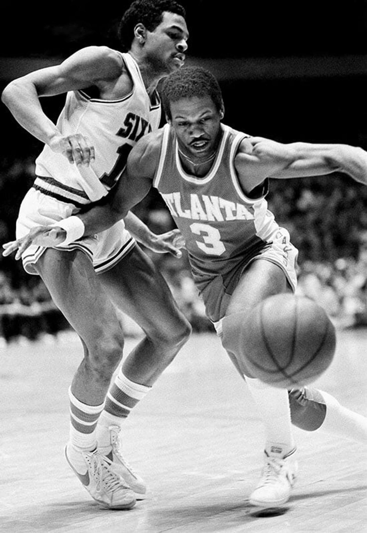Забавно, что в какой-то момент в НБА 80-х играло целых два весьма неплохих Эдди Джонсона. Наш герой большую часть карьеры был разыгрывающим «Атланты Хокс», молниеносным скорером и распасовщиком, неплохо оборонялся, за что дважды попадал во 2-ю оборонительную сборную сезона. До попадания в НБА Джонсон провел четыре хороших сезона за команду университета Оберн. Но уже тогда он был отмечен скаутами как «проблемный игрок», из-за конфликта с главным тренером «Тайгерс» Бобом Дэвисом, который обвинял Эдди в отсутствии профессионализма.