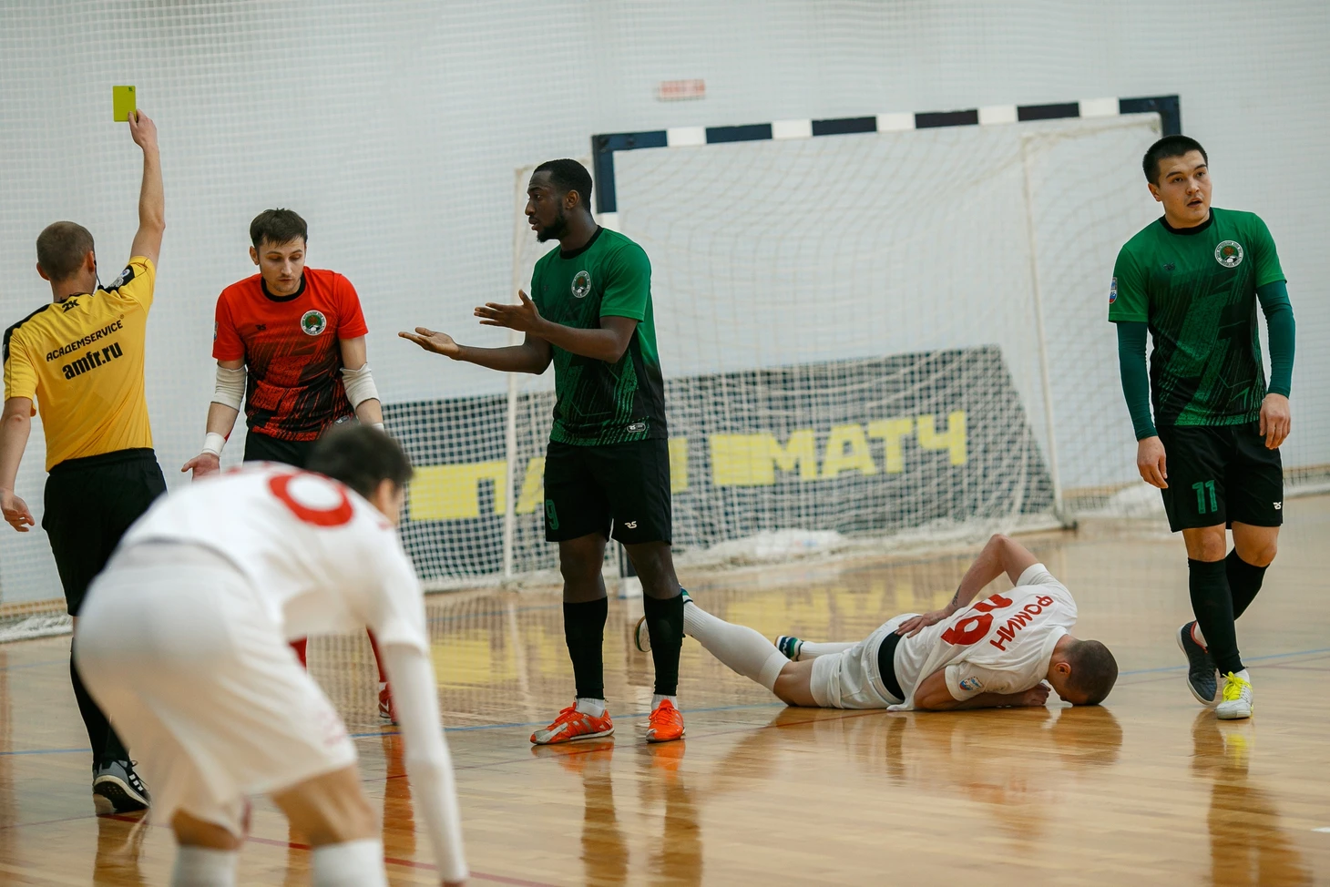 КПРФ-2 могли отыграться уже в следующей атаке, но хозяев спас Джабраил Алханов, выбив мяч с ленточки ворот.