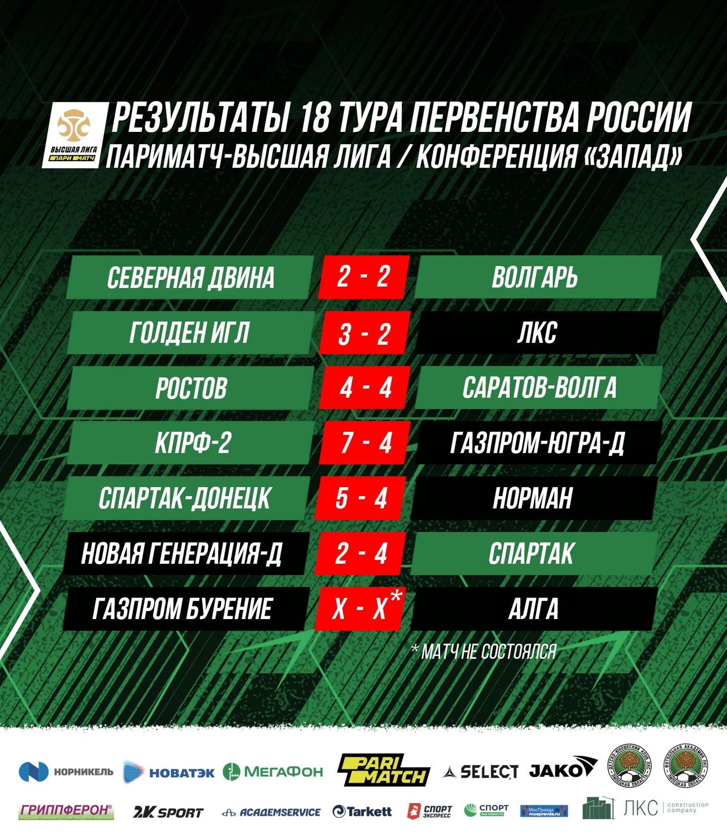 Результаты матчей 18 тура: