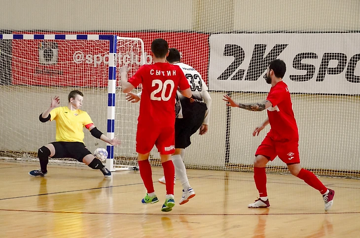 Тут же сработал тайм-аут, взятый Ринатом Мусаловым перед угловым у ворот «Спартака», и Агедиль Мадияров завершил игровую задумку главного тренера – 2:3. Не успели москвичи опомниться, как Иван Крылов совершил проход по правому флангу и неотразимо пробил в ближний угол – 2:4. А точку в первом тайме поставил Исмаил Гибадуллин, который переправил мяч в сетку после паса Никиты Евтушенко – 2:5.