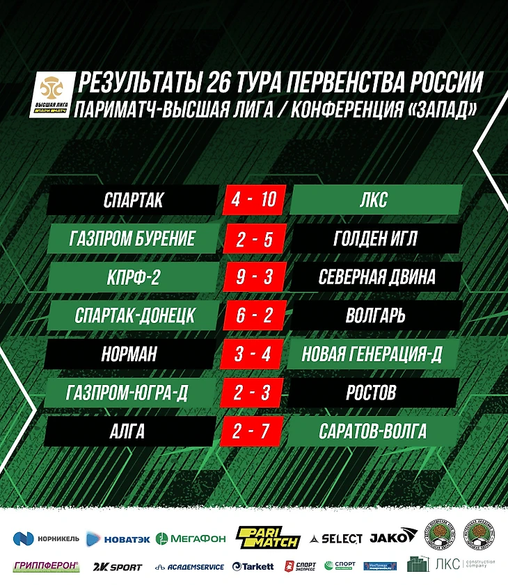 Результаты и обзоры матчей 26 тура Париматч - Высшей лиги Первенства России по мини-футболу среди мужских команд, конференция «Запад», сезон 2020/21