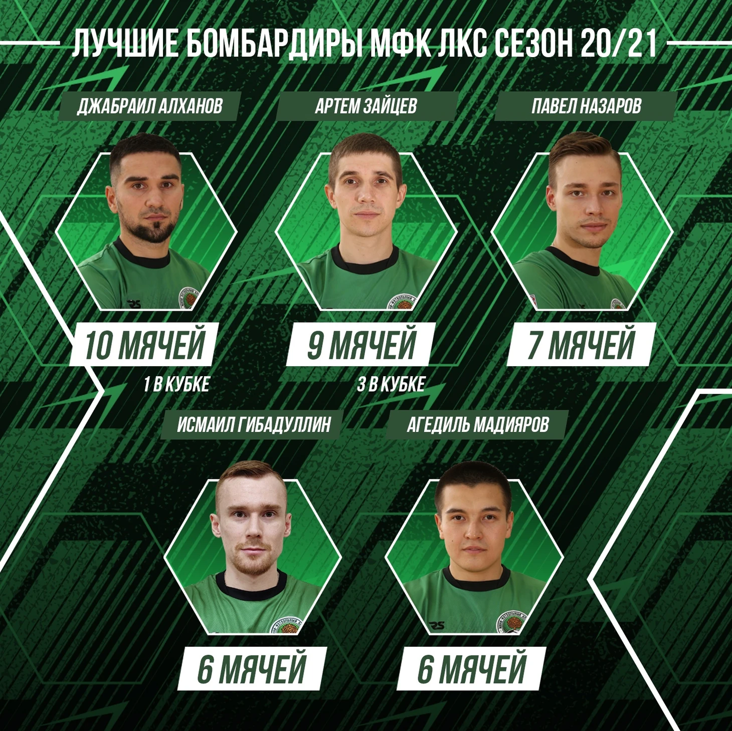 Больше всего игр Алексей Белоусов принял участие в 28 играх МФК ЛКС в сезоне. 27 матчей сыграл Александр Войнов. В 26 встречах на паркет выходили Павел Назаров и Денис Гуляйкин. Больше всего голов В списке бомбардиров лидирует Янник Сомплей, на его счету 21 забитый мяч. На втором месте – Алексей Белоусов (16 голов), замыкает тройку лучших бомбардиров Денис Гуляйкин (14 голов).