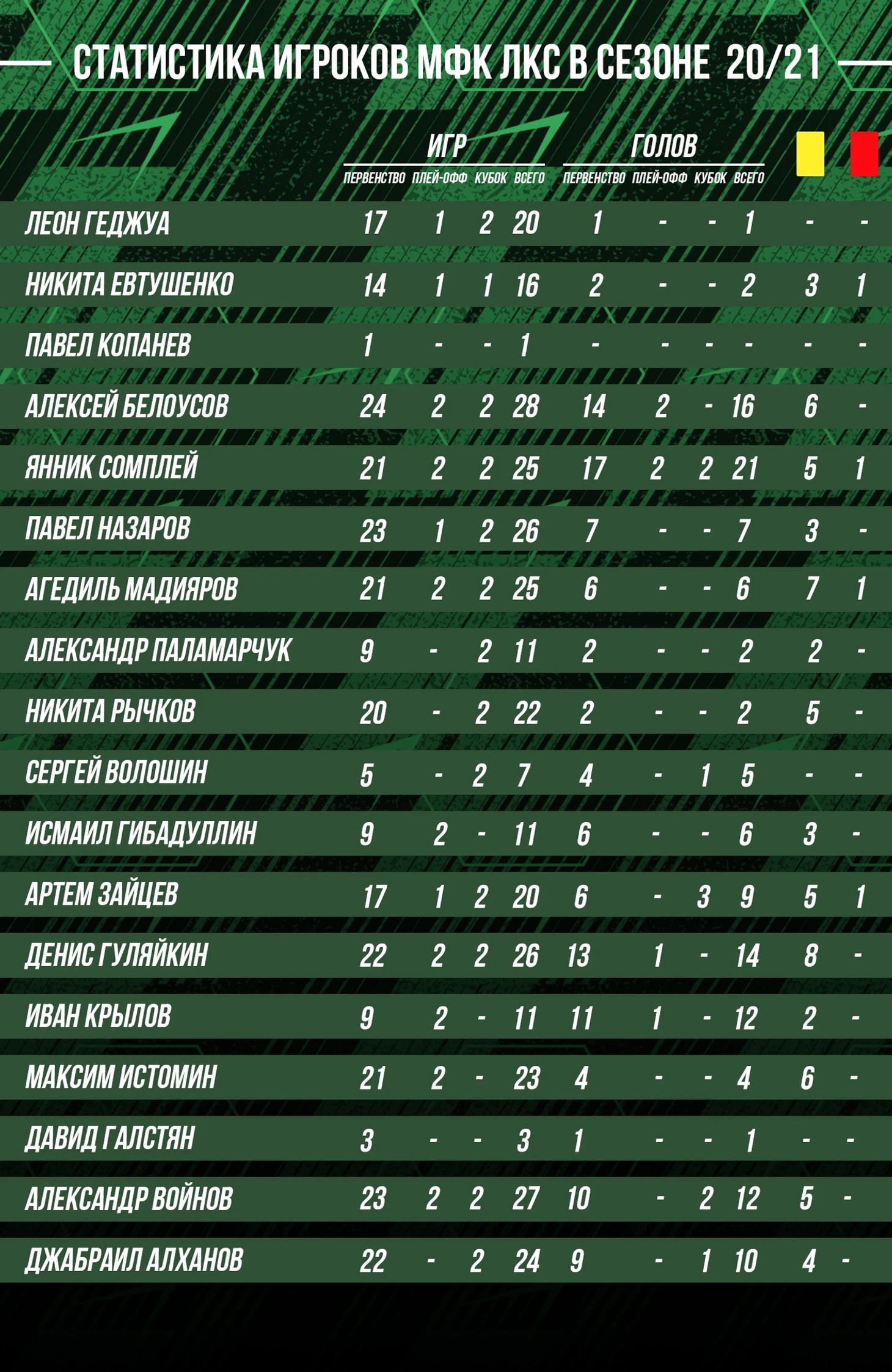 Статистика игроков МФК ЛКС в сезоне 2020/21