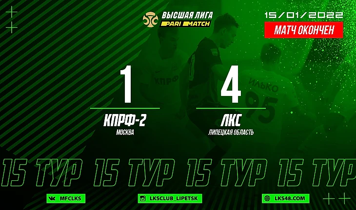 После 15-го тура липчане поднялись на 7-е место в турнирной таблице, КПРФ-2 остался четвёртым. В следующем туре ЛКС вновь предстоит играть в гостях, 21 января подопечных Темура Алекберова ждёт встреча с московским «Спартаком».