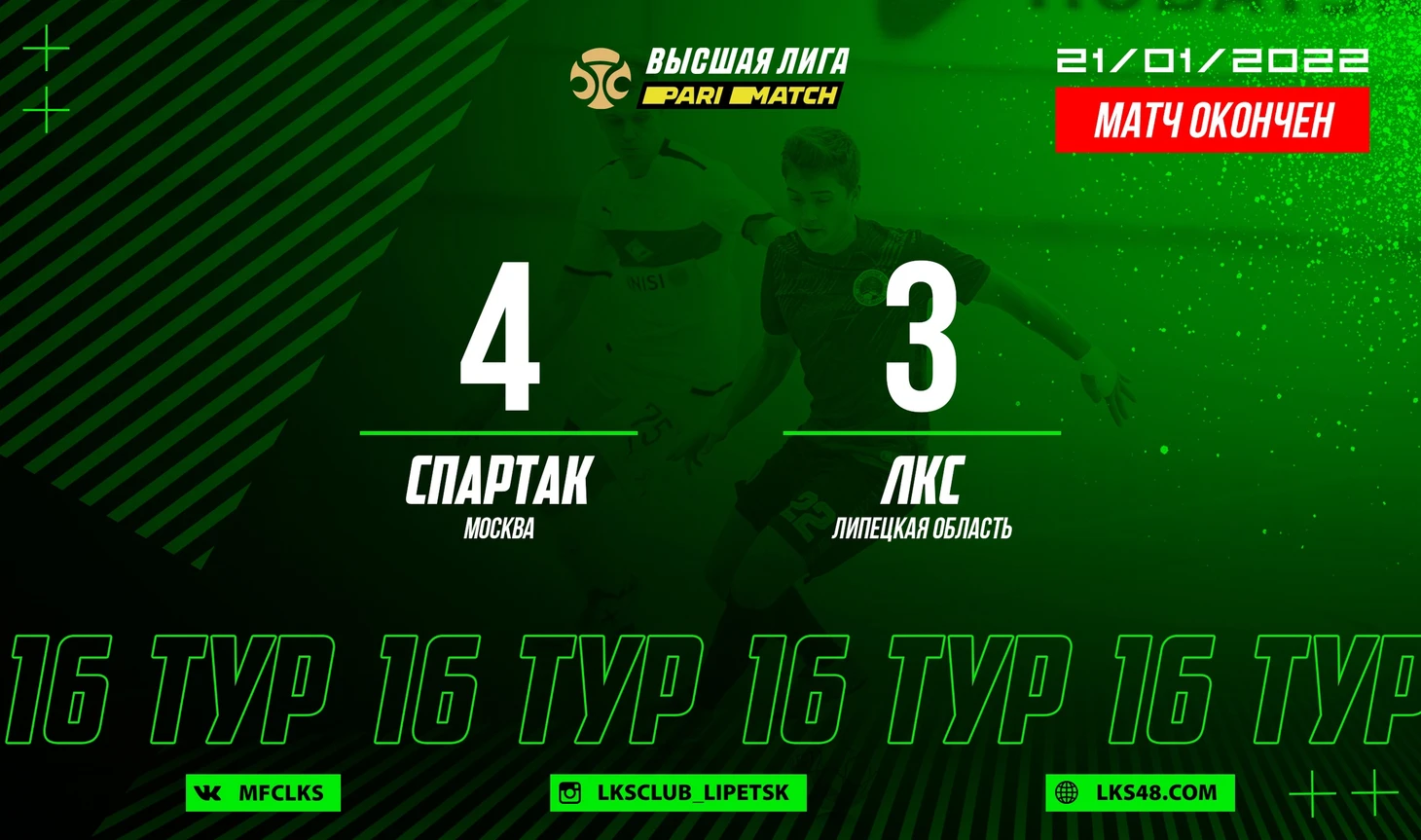 МФК ЛКС уступил в Москве «Спартаку», прервав четырёхматчевую победную серию