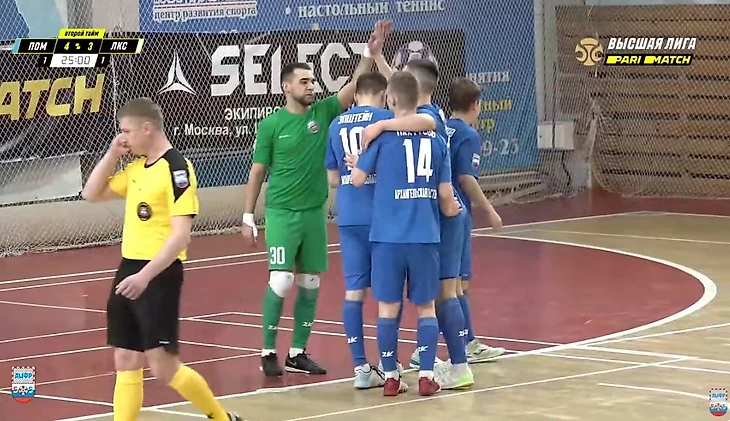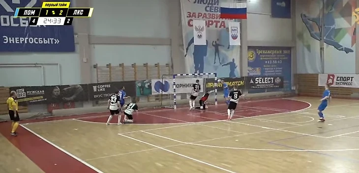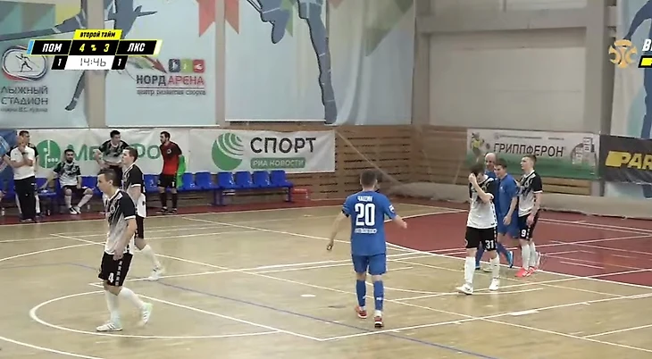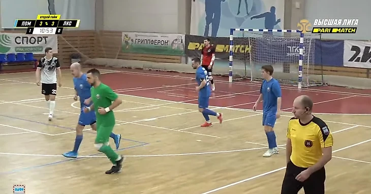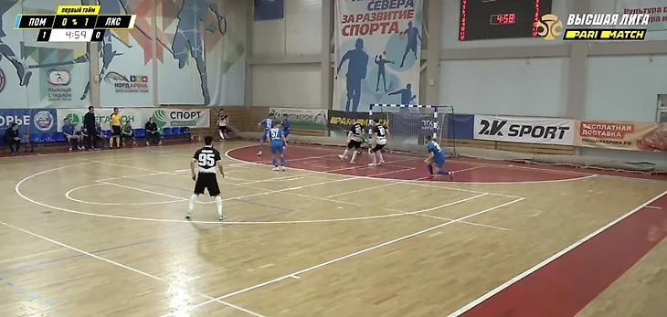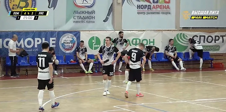 Вскоре чуть не повезло Александру Дунцу, после его удара мяч угодил в штангу. А завершился тайм неожиданным голом «Поморья». После флангового прохода Константина Чащина и рикошета от ноги защитника буквально только вышедший на паркет опытнейший Александр Трушков головой переправил мяч в ворота.