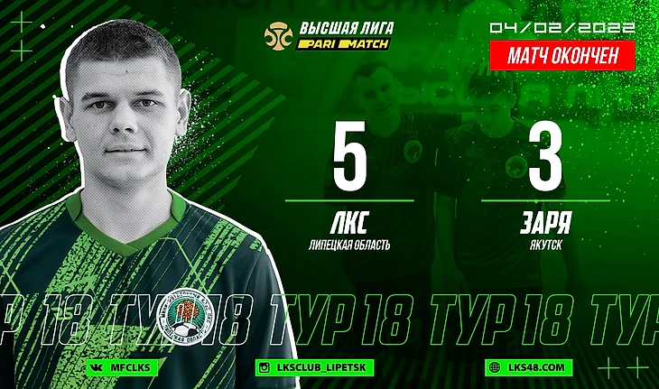 МФК ЛКС (Липецкая область) – МФК «Заря» (Якутск) – 5:3 (1:1).