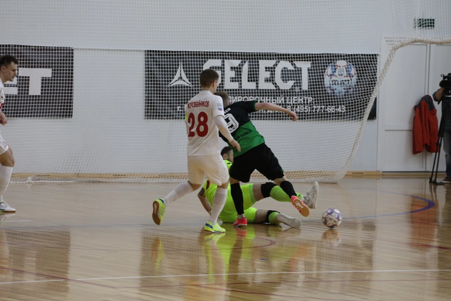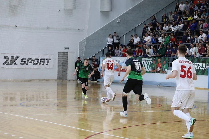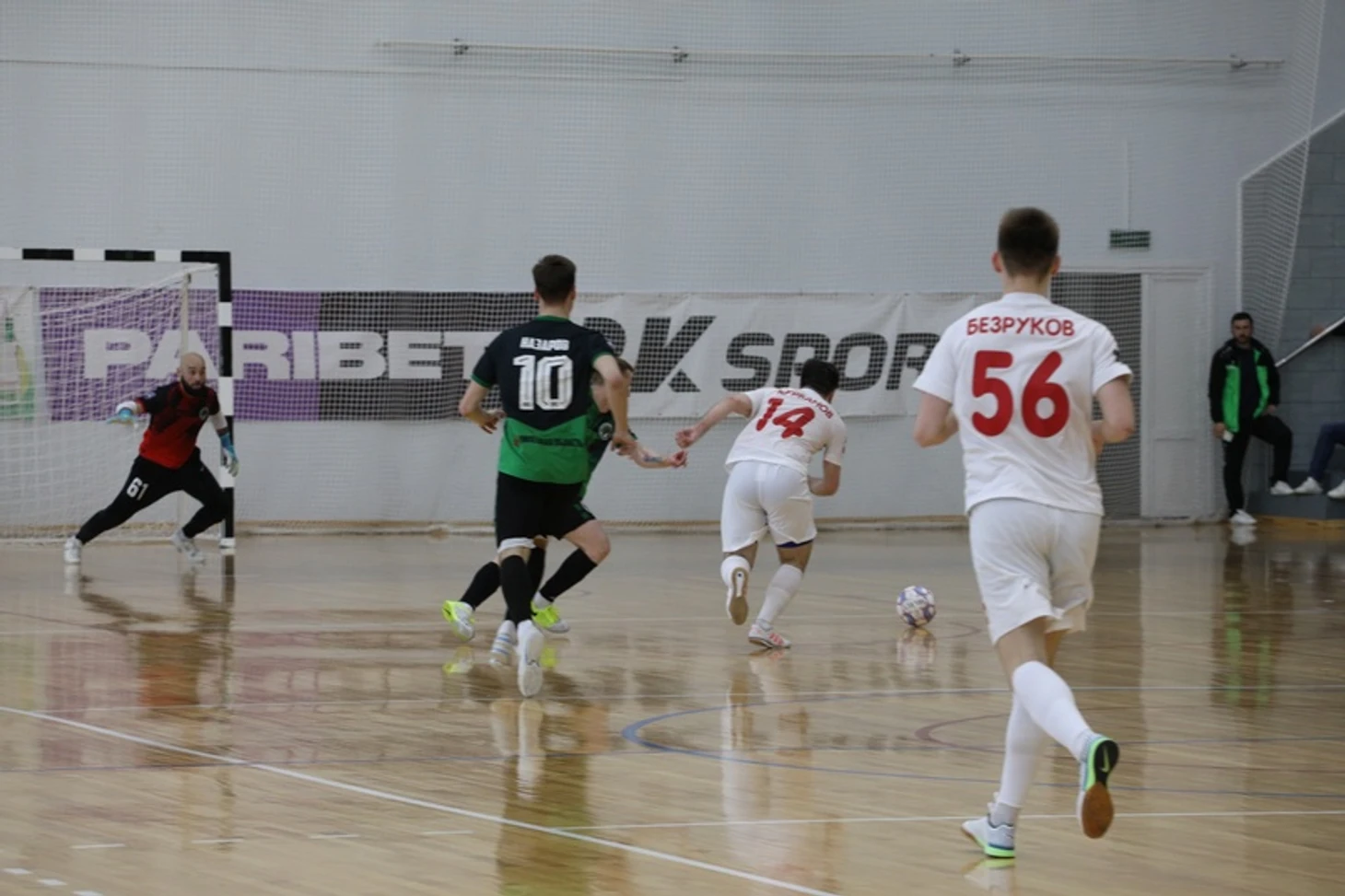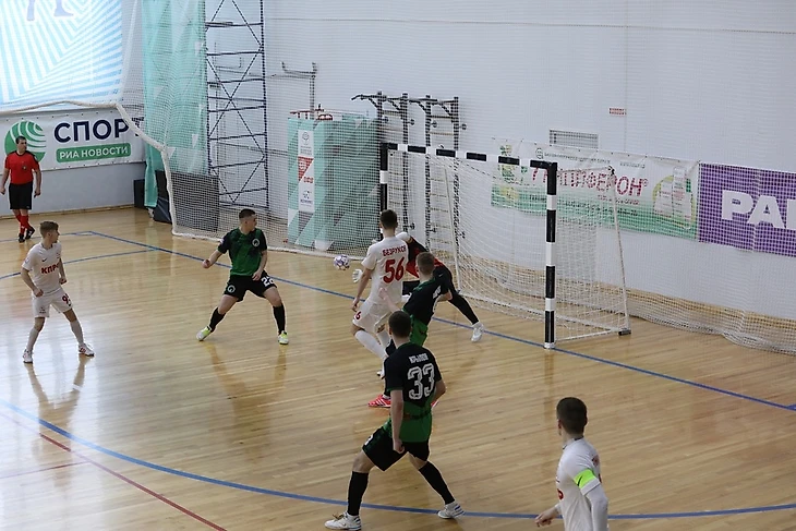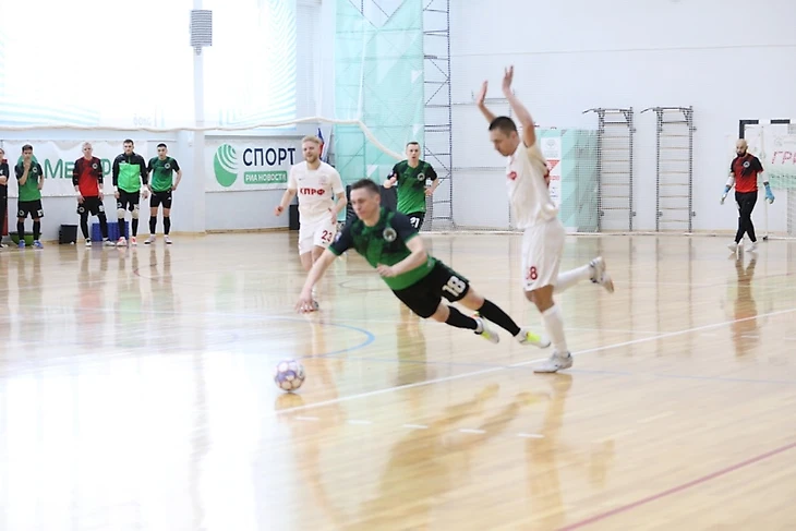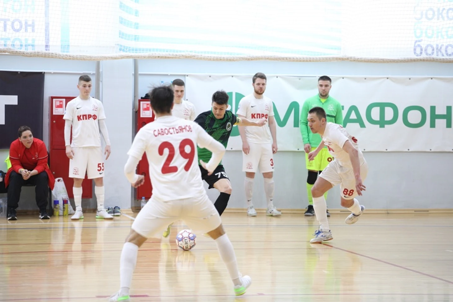 Первые пять минут матча на паркете шла борьба за инициативу. Обе команды старались к минимуму свести риск потери и преимущественно забрасывали мяч вперёд, где шли в прессинг и навязывали борьбу. На 6-й минуте Иван Костяной опасно пробил по воротам Георгия Замтарадзе, голкипер КПРФ-2 ногой отразил удар. На 9-й минуте едва не открыл счёт Елисей Елисеев, но вратарь гостей был надёжен.