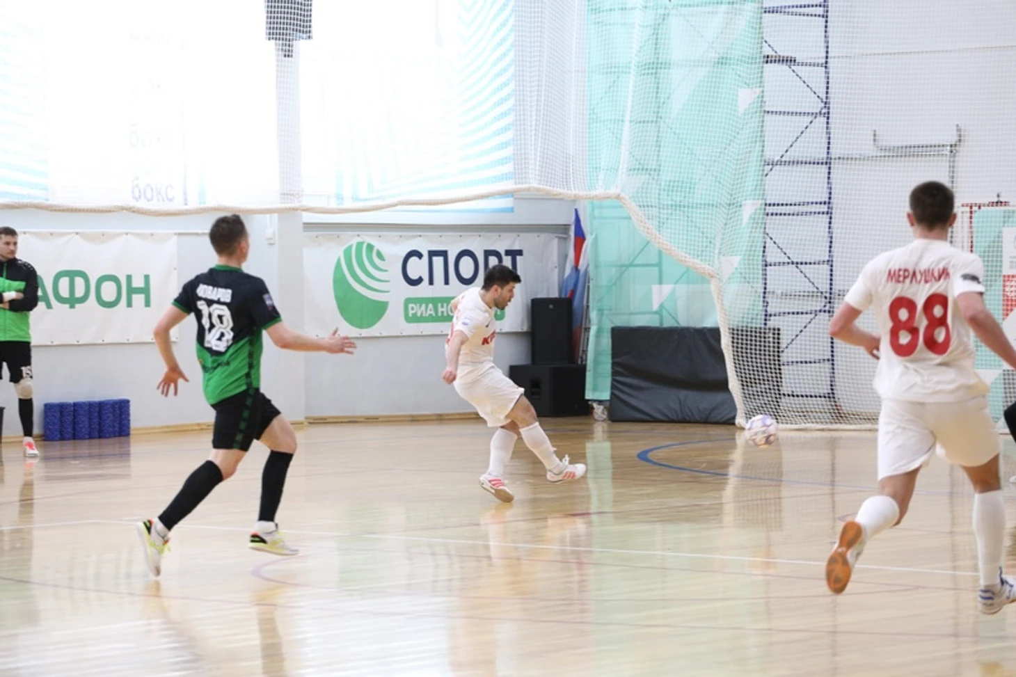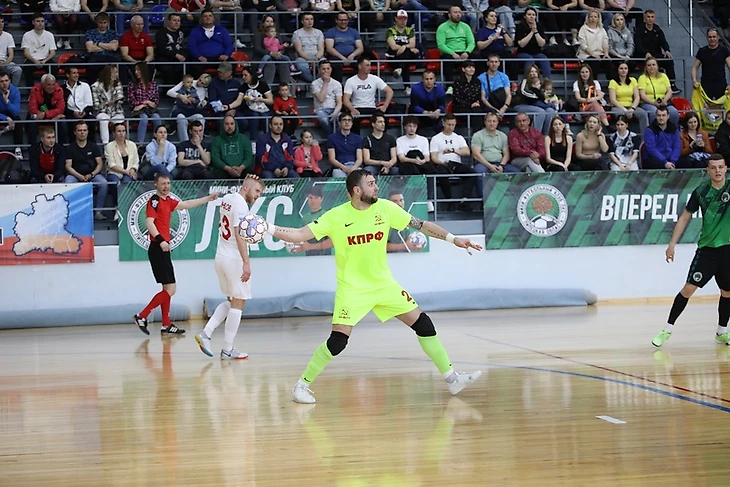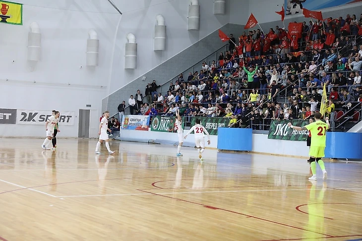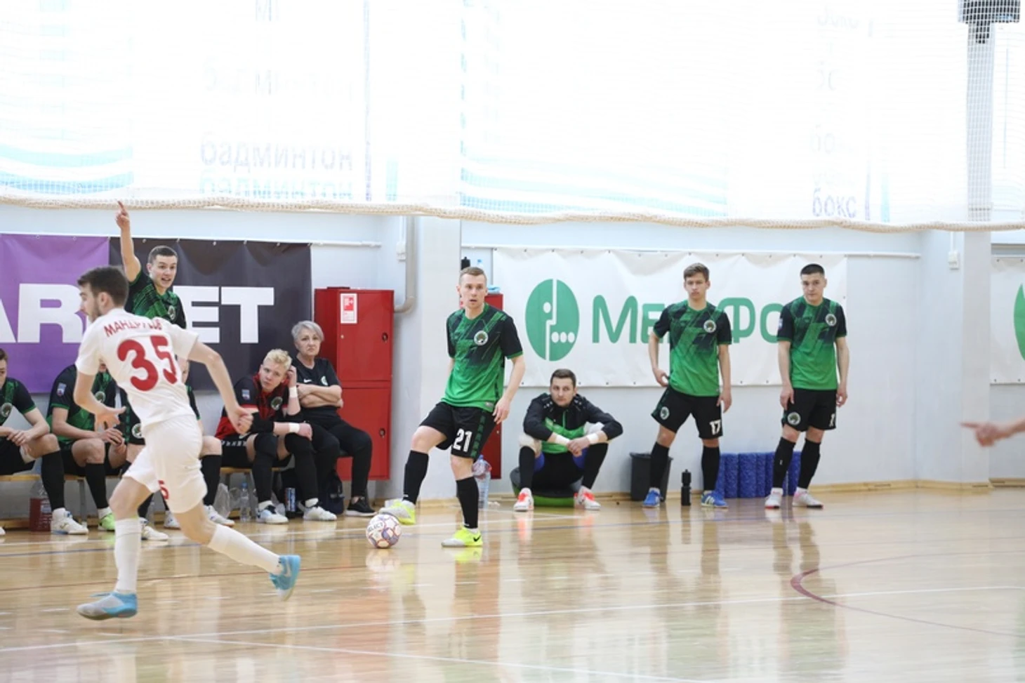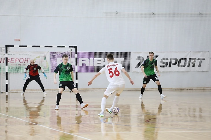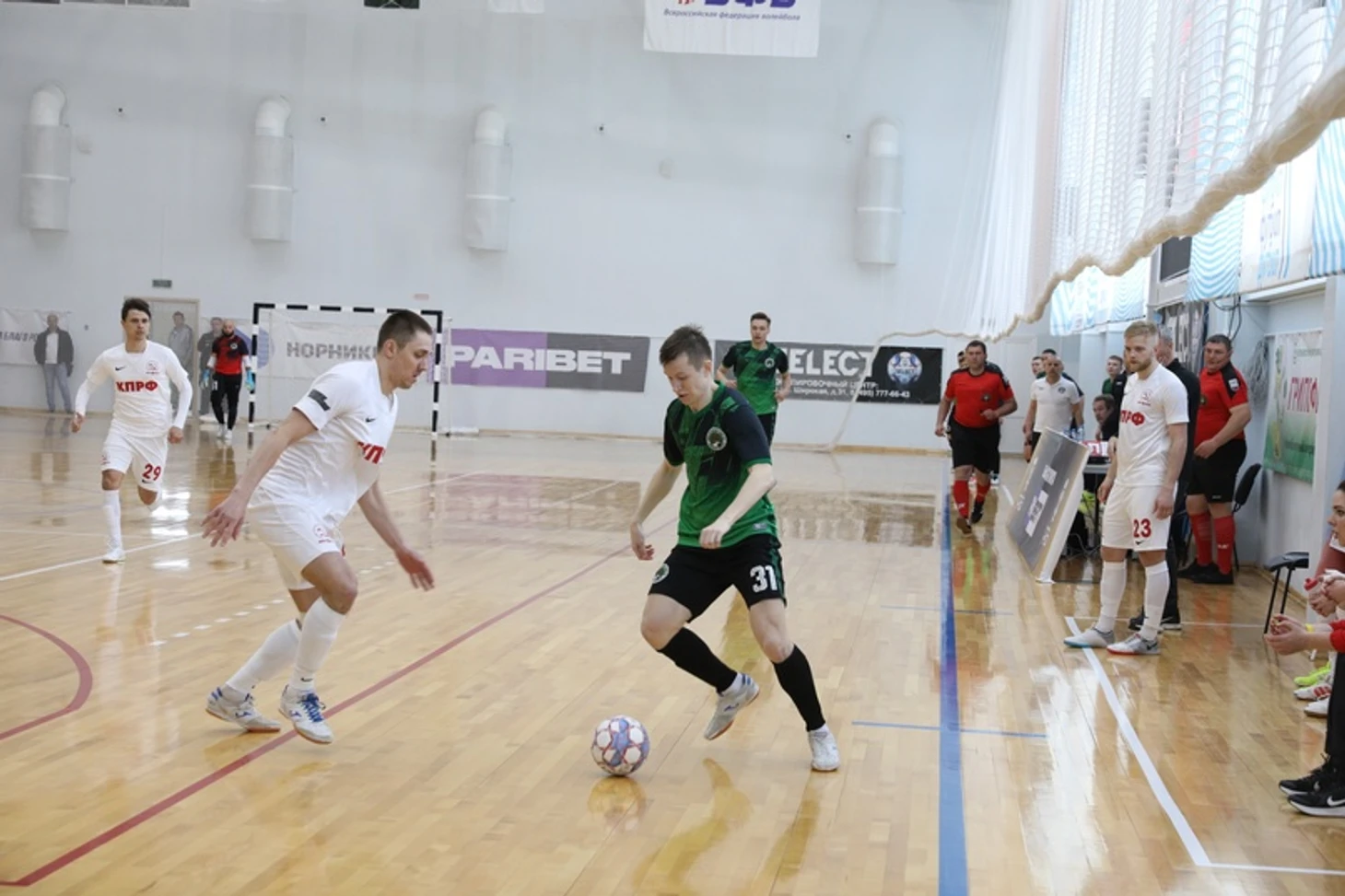 Первые пять минут матча на паркете шла борьба за инициативу. Обе команды старались к минимуму свести риск потери и преимущественно забрасывали мяч вперёд, где шли в прессинг и навязывали борьбу. На 6-й минуте Иван Костяной опасно пробил по воротам Георгия Замтарадзе, голкипер КПРФ-2 ногой отразил удар. На 9-й минуте едва не открыл счёт Елисей Елисеев, но вратарь гостей был надёжен.