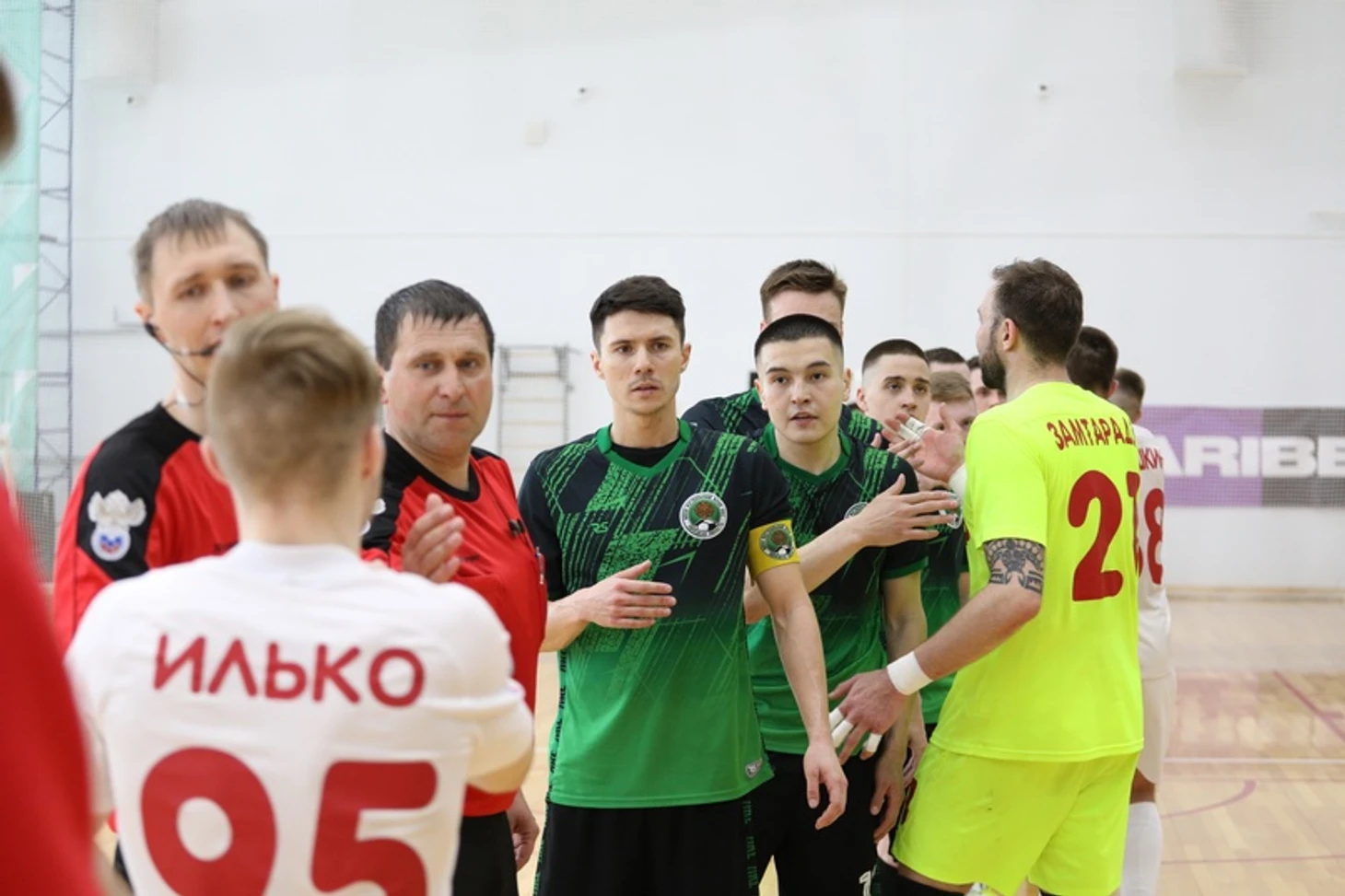 На 45-й минуте «коммунисты» заработали 6-й фол. Георгий Замтарадзе и Руслан Курбанов пытались оспорить судейское решение, но арбитры остались непреклонны. 10-метровый отправился бить Исмаил Гибадуллин, но вратарь плечом отбил удар.