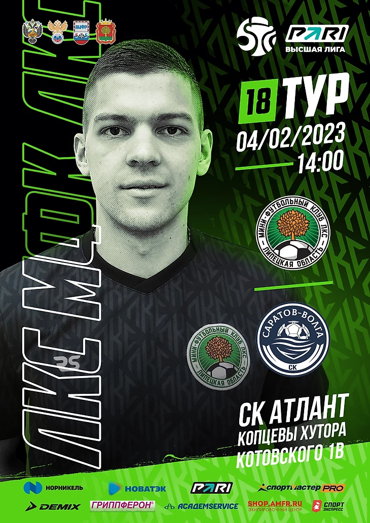 Мини-футбольный клуб ЛКС на этой неделе завершит регулярное Первенство PARI – Высшей лиги домашним матчем с СК "Саратов-Волга".»Игра состоится в субботу, 4 февраля, в спорткомплексе "Атлант" (Липецкий район, Копцевы Хутора, ул. Котовского, 1в. Начало – в 14:00.