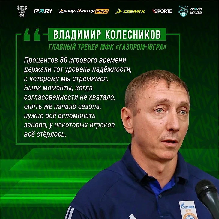 Главный тренер МФК «Газпром-Югра» Владимир Колесников подвёл итоги противостояния с ЛКС в третьем туре PARI – Суперлиги.