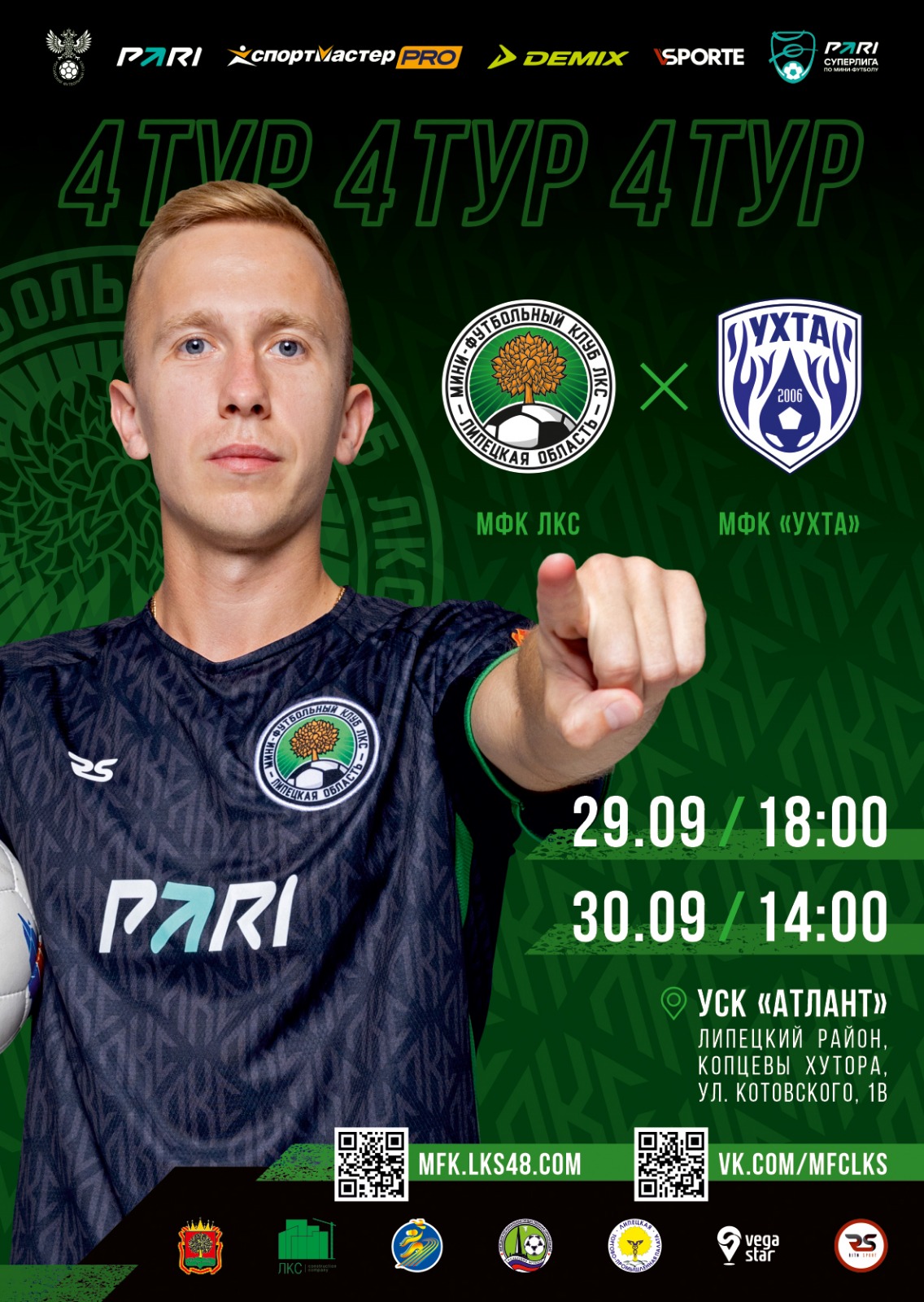 На этой неделе мини-футбольный клуб ЛКС проведёт два домашних матча 4-го тура PARI – Суперлиги чемпионата России по мини-футболу 2023/24 с «Ухтой», которая возглавляет турнирную таблицу после трёх туров. Игры состоятся 29-го и 30-го сентября (пятница и суббота) в спорткомплексе «Атлант» (Липецкий район, Копцевы хутора, Котовского, 1В). Начало – в 18:00 и 14:00.