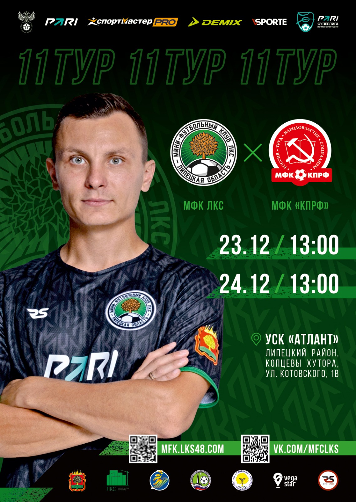 На этой неделе мини-футбольный клуб ЛКС проведёт заключительные матчи в 2023 году. В 11-м туре PARI – Суперлиги чемпионата России по мини-футболу 2023/24 липчане примут в домашних стенах МФК «КПРФ» (Москва), чемпиона России минувшего сезона. Игры состоятся 23 и 24 декабря (суббота и воскресенье) в спорткомплексе «Атлант» (Липецкий район, Копцевы хутора, Котовского, 1В). Начало – в 13:00.