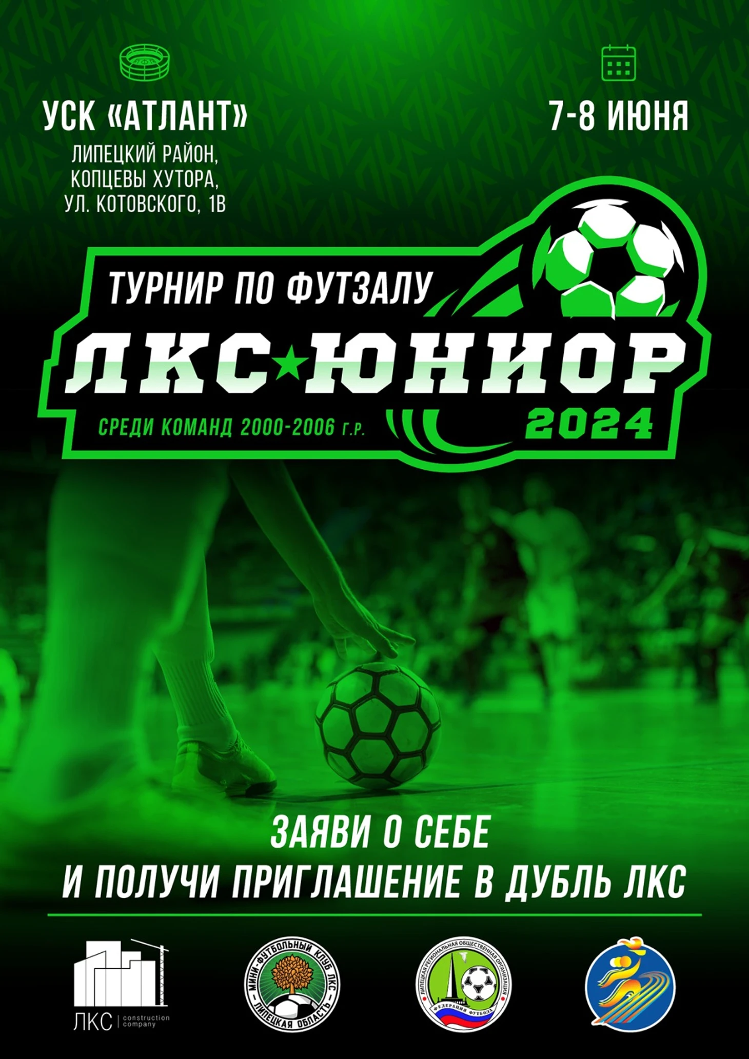 К участию в соревновании приглашаются футболисты 2000-2006 годов рождения, лучшие получат приглашение в дубль мини-футбольного клуба ЛКС