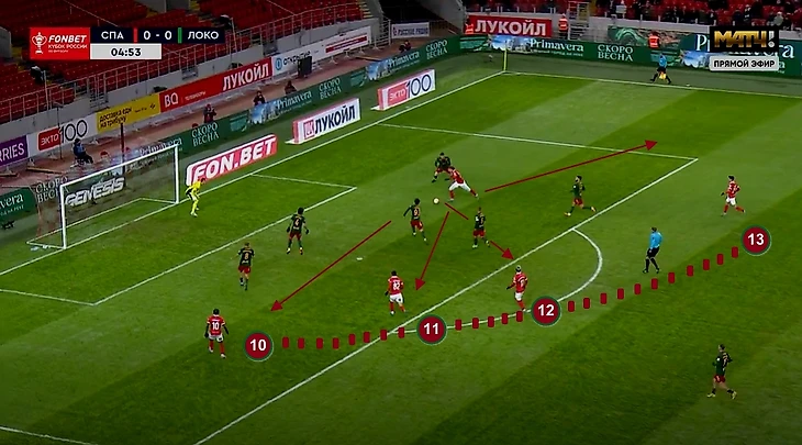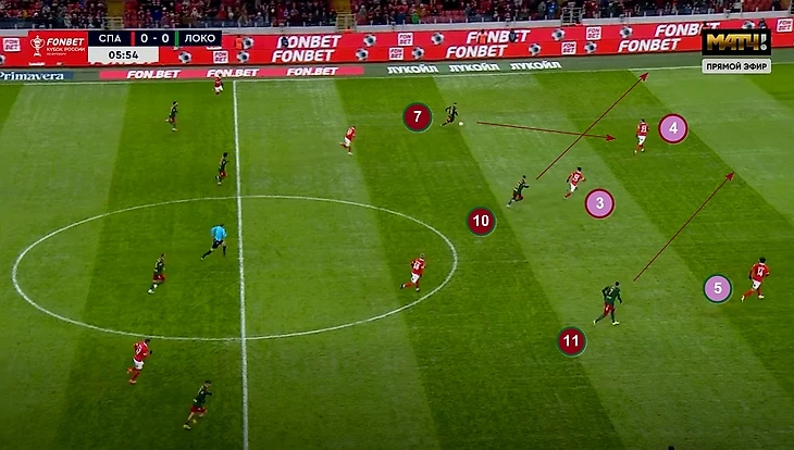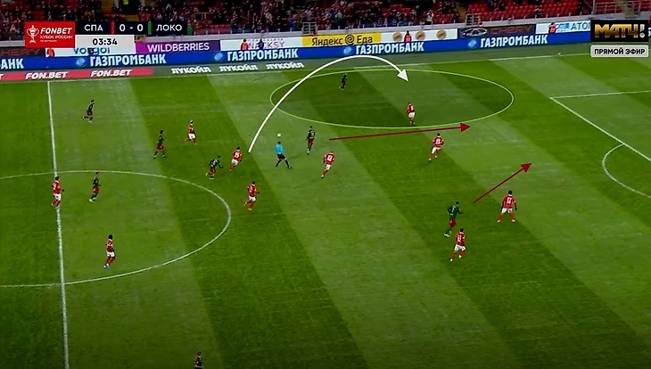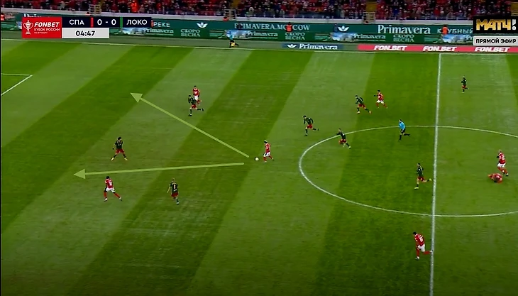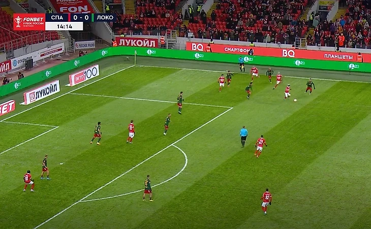 Видя что "Спартак" не умеет использовать пространство "Локомотив" полностью сосредоточился на подступах к штрафной