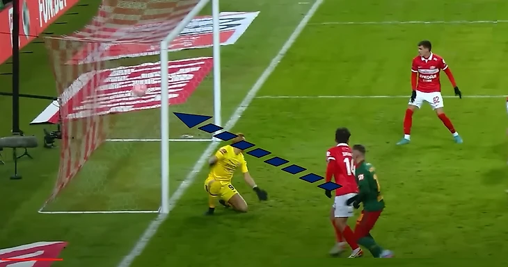 Подарил Денисов мяч соперникам вблизи от своей штрафной, после чего сместился уже Миранчук к дужке. Ну а следом пробил он ничем не хуже Игнатова или Промеса, в итоге также удачно послав снаряд под правую от себя стойку!...