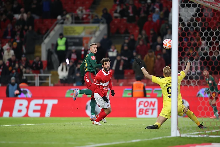 «Локомотив» ответил симметричным эпизодом практически сразу: Пиняев получил тонкий пас от Миранчука в левой части штрафной и после небольшого смещения в центр пробил в дальний угол — Максименко не без труда вытащил. Ничья по голевым моментам уже к седьмой минуте.