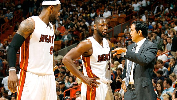 Я бы не стал ставить вопрос именно таким образом. Спо в данный момент подстраивает команду и под Леброна, и под Уэйда, при этом пытается впихнуть в эту схему и Боша! Джеймс и Уэйд наверняка улыбаются когда слышат этот вопрос, эти парни отличные друзья и, стоит признать, в этом сезоне мне нравится как играет Джеймс. По мне он уменьшил своё эго и стал больше действовать на команду, стал больше задействовать партнеров, от этого сразу же поползла статистика Чалмерса вверх, у Уэйда с эго никогда проблем не было. Это команда лучших друзей.