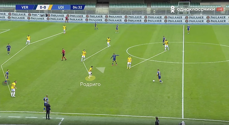 Стоит отметить и периодически слабую отработку аргентинца в обороне: он может очень долго возвращаться после атаки, чем рушит компактность обороны при низком блоке. Но это объясняется как раз-таки тем стилем игры, который ставит Готти. Тут есть два ключевых момента. Первое - структура Удинезе подготовлена к таким недоработкам именно от Родриго.