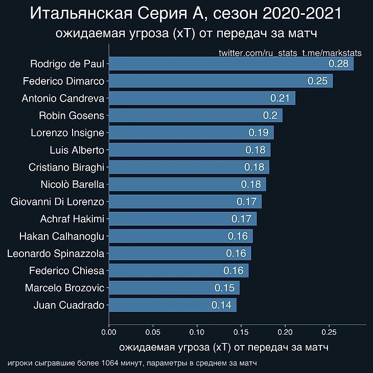 По этому пути пошел и де Пауль. В первом же сезоне игрок занял твердое место в основном составе и далее с каждым новом сезоном только прогрессировал. При этом аргентинец активно менял позиции на поле. Приходил в итальянскую команду Родриго как сто процентный атакующий футболист: быстрый, легкий, техничный. Но за 4 года в Италии он постепенно опускался по позиции на поле и от нападающего/атакующего полузащитника пришел к восьмерке/опорному полузащитнику. Де Пауль за эти годы действительно прибавил как в физическом, техническом, так и тактическом планах. Сейчас Родриго входит в число лучших игроков по продвижению и обострению игры не только в Серии А, но и во всем мире. В статистическом плане он просто разрывает Серию А. Вот только парочка примеров.