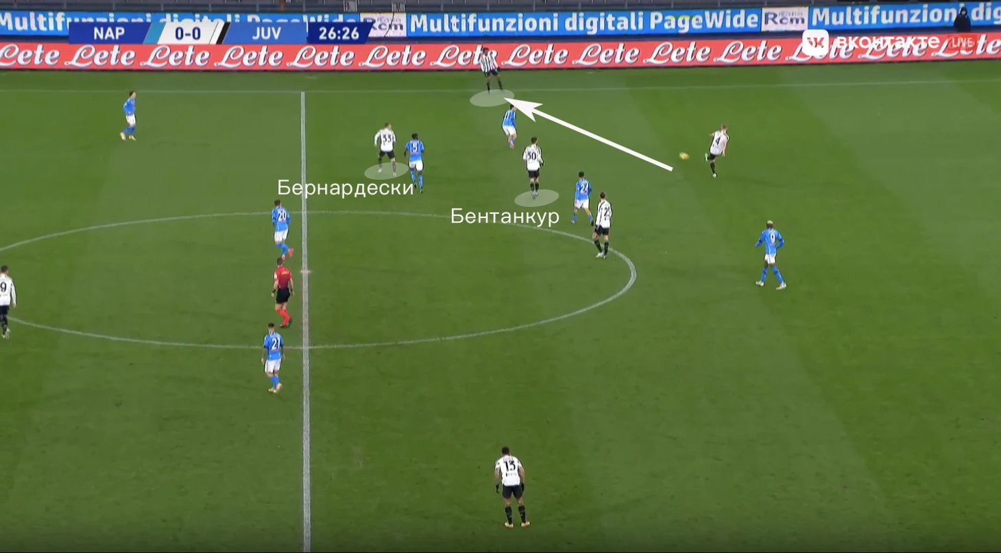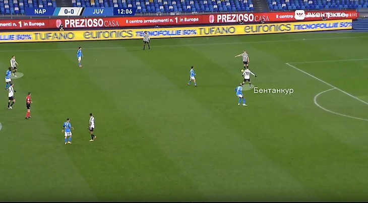 Таким образом Ювентусу удавалось выйти в среднюю треть. Однако, неаполитанцы быстро перестраивались и образовывали тот самый вышеупомянутый плотный средний блок.