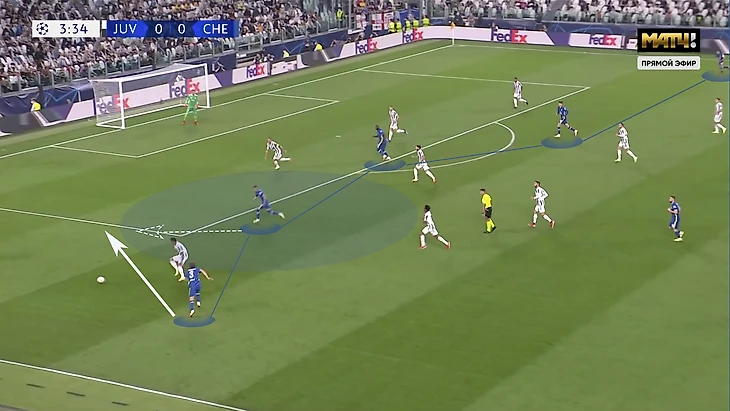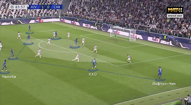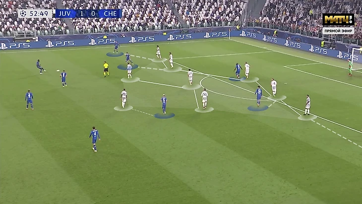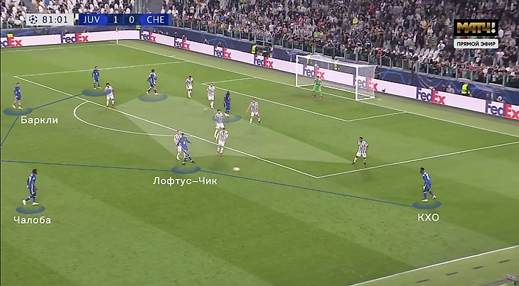 Сразу четыре игрока "Юве" нагружают последнюю линию "Челси" в переходной фазе