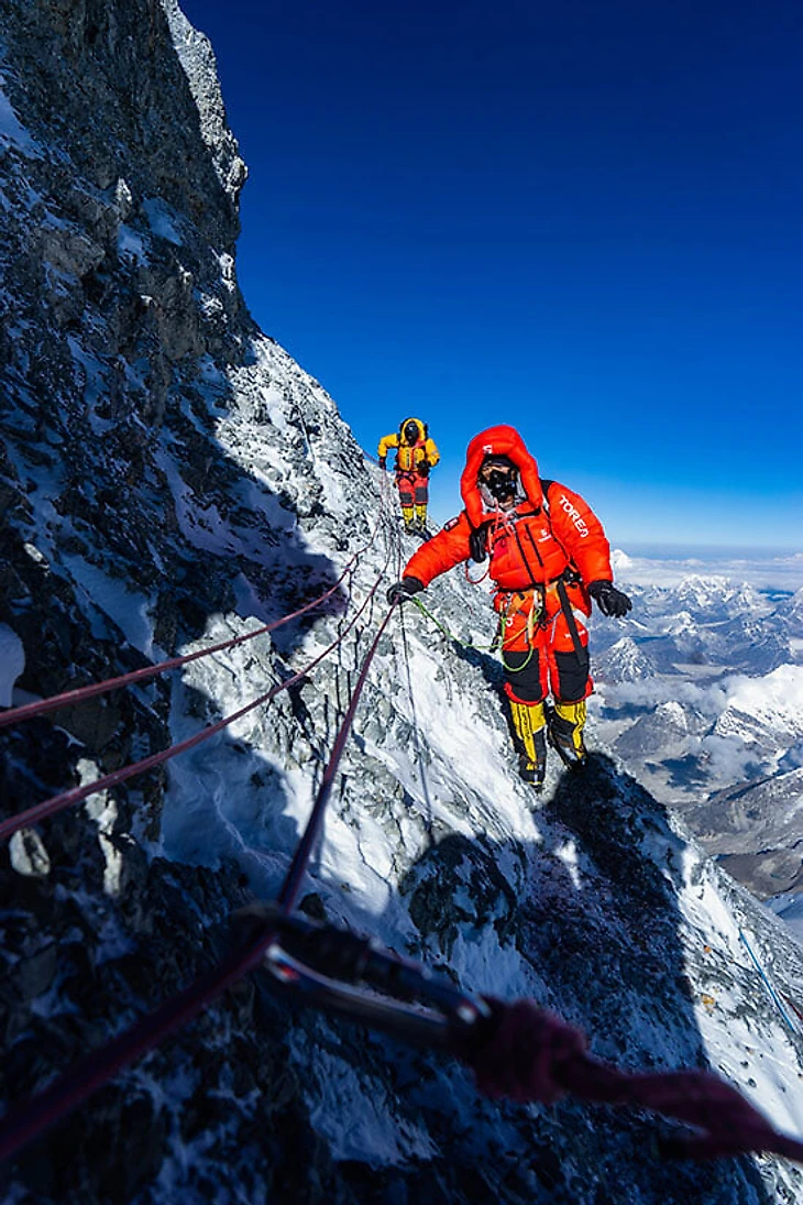 Это уточнение – «при благоприятных условиях» – было крайне важным. Все альпинисты, совершающие восхождение в Гималаях, очень быстро понимают, что погода и снежные условия так же важны, как физическая подготовка и акклиматизация. Во время их первого подъема на вершину Хабелер получил пищевое отравление в лагере-III и был вынужден спуститься; Месснер шел вперед с двумя шерпами, но затем их накрыл сильный шторм на Южном седле, и они оказались заперты в своей палатке на два дня. Она еле выдерживала порывы ветра до 200 м/с, температура упала до –40 °С. К тому времени, когда Месснер и Хабелер более чем через две недели вернулись на Южное седло, чтобы в последний раз попытаться взойти, они сами уже начали сомневаться в собственной цели.