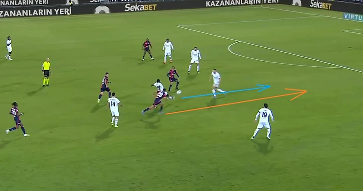 Учитывая такое высокое положение одновременно обоих крайних защитников, Фофана периодически смещался назад и становился третьим центральным. А если он этого не делает, велик риск опасной контратаки при потере.