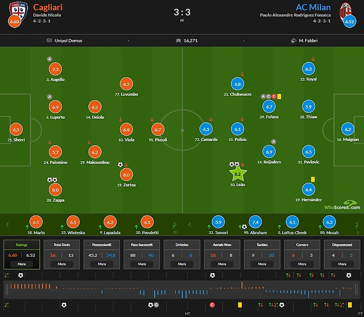 У Кальяри как по маслу залетало , хотя команда и очень симпатичная, но фарт был не у Милана