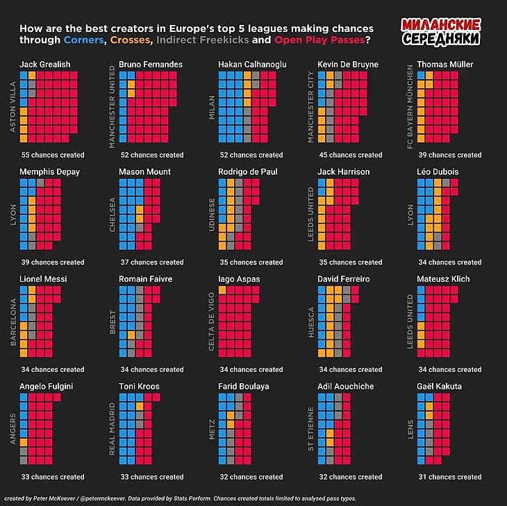 Несмотря на то, что до недавнего времени Милан никак не мог забить с углового Хакан создал целых 24 момента с угловых, это самый большой показатель в мире. [Opta]