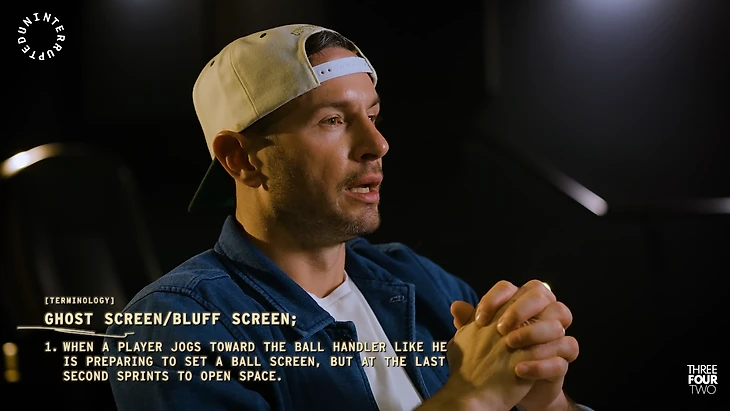 Редик: Ghost screen, или как Леброн его называет, bluff screen, состоит в том, что ты мчишься ставить заслон, при этом по сути не останавливаешься, ты просто бежишь мимо места предполагаемого пик-н-ролла и либо выходишь на трехочковую, либо прорываешься под кольцо. Это Ghost screen («неосязаемый» заслон), потому что ты на самом деле не ставишь заслон, ты просто пытаешься запутать двух вовлеченных защитников. Выглядит как пик-н-ролл, но на самом деле это просто Ghost screen.