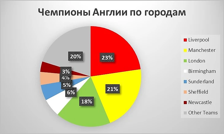 А теперь давайте сравним количество побед в Чемпионате Англии среди соперников из одного города.