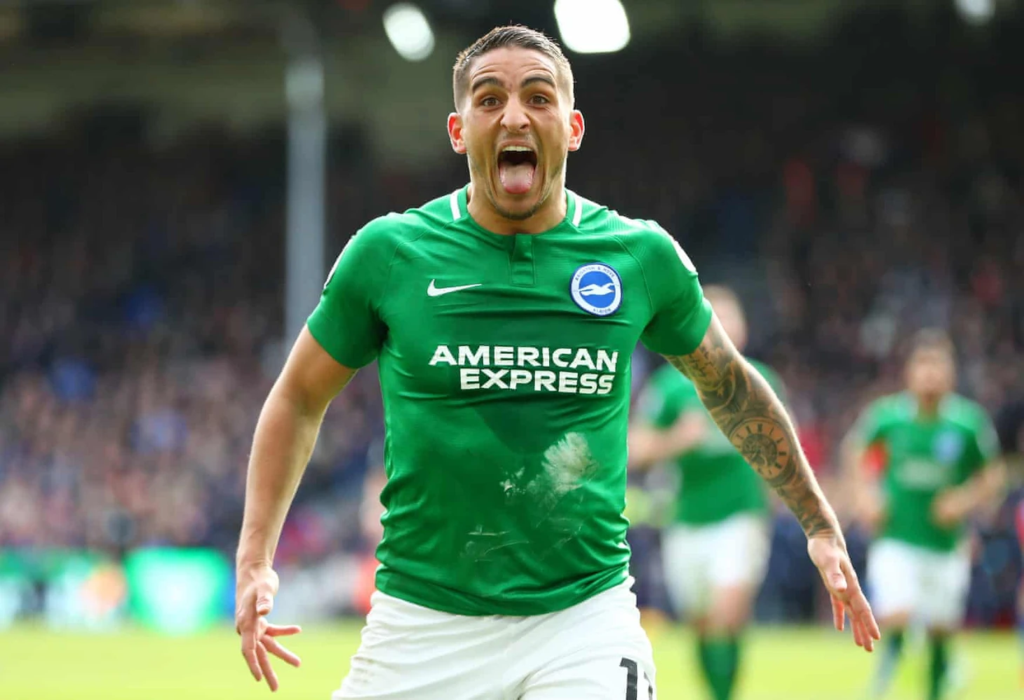 2. Антони Нокэрт отмечает свой победный гол за "Брайтон" в игре против "Кристал Пэлэс". Он же получил жёлтую карточку через 28 секунд после начала матча - самое быстрое предупреждение в Премьер Лиге за последние 10 лет.